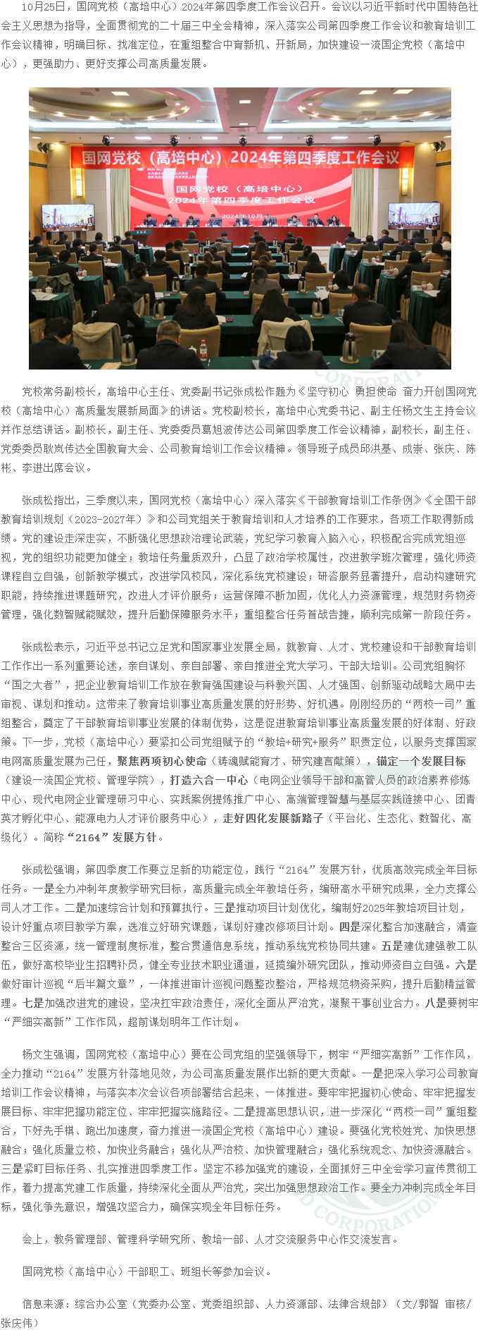 國網(wǎng)黨校(高培中心)召開2024年第四季度工作會議
