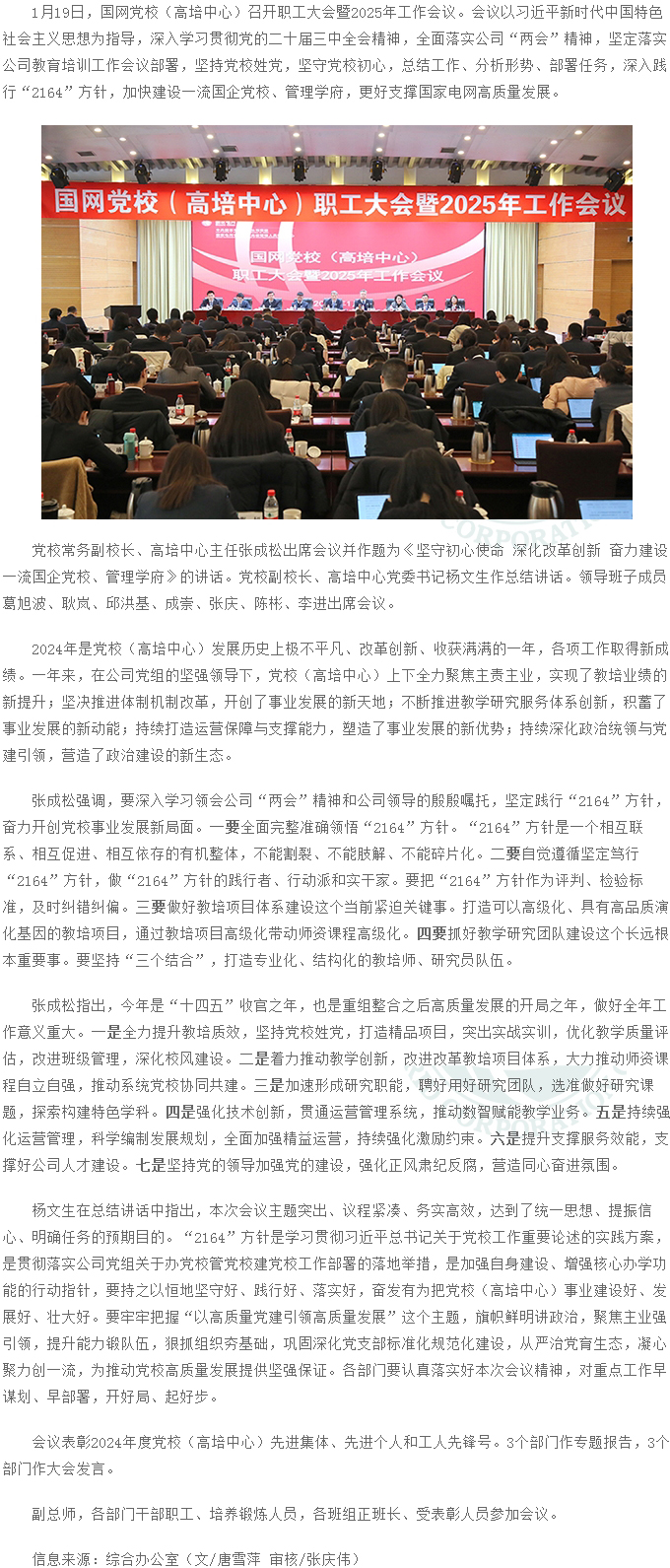 國網(wǎng)黨校(高培中心)職工大會暨2025年工作會議召開